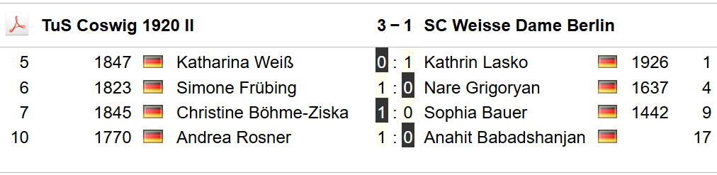 Am Sonntag, 21.09.2025, nahm erstmalig eine WeDa-Frauenauswahl am überregionalen DSB-Ligabetrieb teil. Unsere vier Teilnehmerinnen Kathrin Lasko, Nare Grigoryan, Sophia Bauer und Anahit Babadshanjan fuhren am Sonntagmorgen mit dem PKW sehr zeitig los, um den Spielort kurz vor Dresden pünktlich zu erreichen. Auf eine Anreise bereits am Samstag mit Übernachtung, deren Kosten der Verein übernommen hätte, wurde dabei verzichtet.
