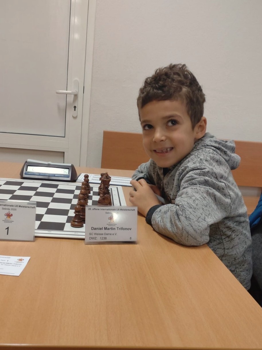 Martin Trifonov – eines unserer jüngsten Vereinsmitglieder – hat die Offene U8-Meisterschaft (mit internationaler Beteiligung) im sächsischen Sebnitz mit 8,5/9 Punkten gewonnen. Herzlichen Glückwunsch!