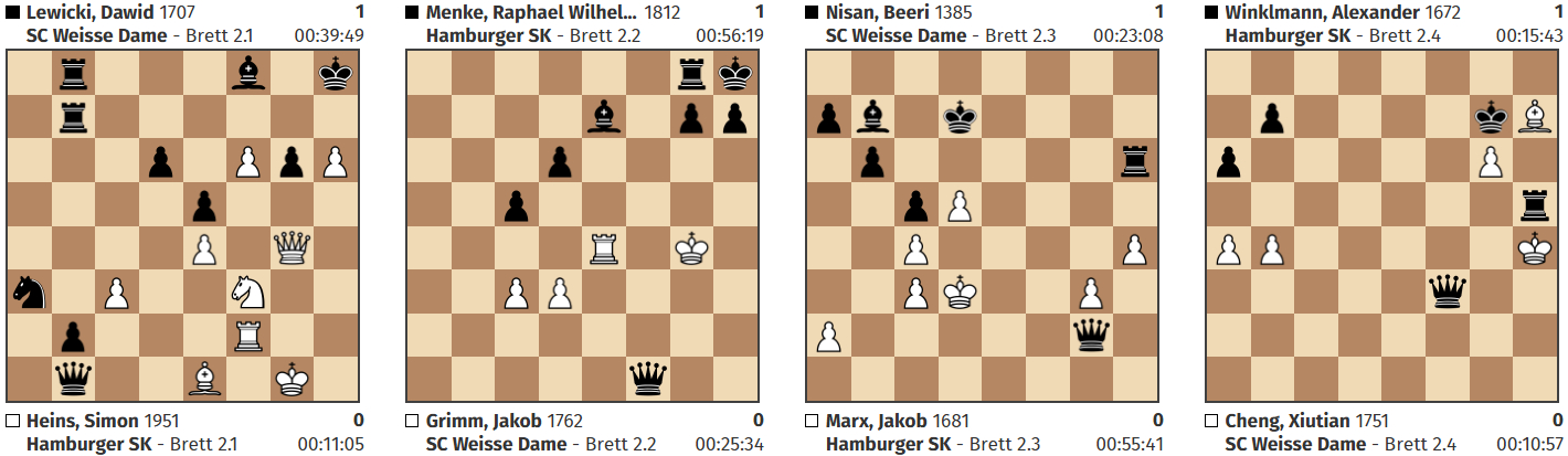 16:30 Uhr: Sanaa konnte ihre schwierige Stellung leider nicht halten. Die drei übrigen Partien stehen aber gut bis sehr gut.