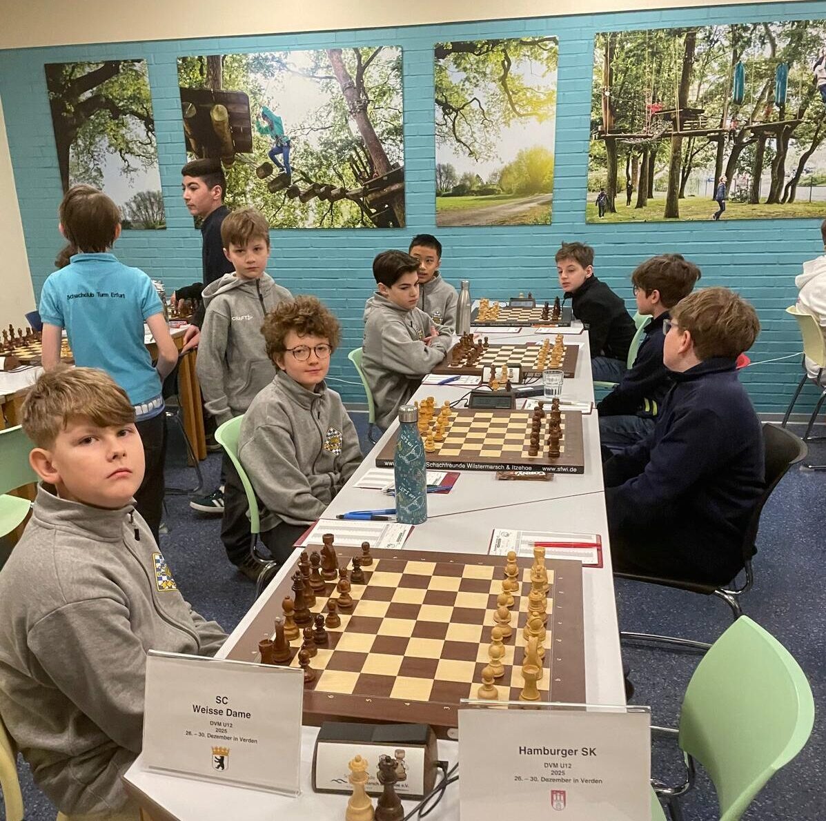 In der Altersklasse u12 haben wir tatsächlich noch nie an einer DVM teilgenommen. Aber sowohl der Turnierort im niedersächsischen Verden/Aller als auch der Betreuer Hendrik sind durchaus vertraut… Im Vergleich zur Norddeutschen Meisterschaft ist Jakob für Louis in die Mannschaft gerückt. Weiterhin treten Dawid, Beeri, Xiutian und Niklas für unseren Verein an, und wir sind als Nr. 12 von 20 Teams eingeordnet.