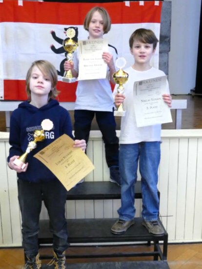 Die große Überraschung des Turniers war allerdings Niklas, der nur als Nr. 9 gesetzt war. Nach einem holprigen Start gewann er gegen namhafte Konkurrenz Partie um Partie und hätte mit einem Sieg in der letzten Runde sogar Meister werden können! Aufgrund der Niederlage in der letzten Runde wurde er „nur“ Zweiter, aber mit so einem tollen Ergebnis hatte nicht einmal der optimistische Trainer gerechnet. Als Sahnehäubchen obendrauf hat auch er sich erstmals für die DEM qualifiziert. Herzlichen Glückwunsch!
