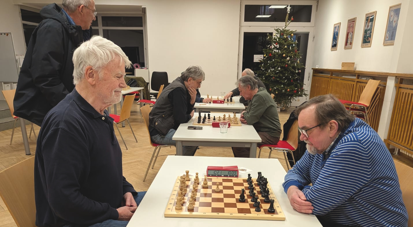 Zum Beginn des Weisse-Dame-Jubiläumsjahres (75.) trafen sich neun hochmotivierte Senior:innen zu einem freundschaftlichen Vergleich bei Christstollen und Glühwein. Als später Imbiss folgten dann noch Boulettchen in Teufelssoße und belegte Schnittchen. Leider mussten zwei weitere Teilnehmer:innen kurzfristig aus gesundheitlichen bzw. beruflichen Gründen dem Turnier fernbleiben.